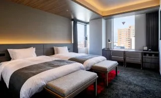 The hotel has a high satisfaction rate among business and budget travelers due to its stylish facilities from the Okura Nikko Hotel group. It is located in the heart of the Tenjin district, providing excellent access to restaurants, and the price satisfaction is excellent compared to the room size.